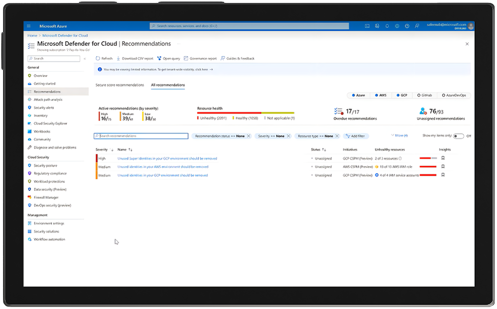 The Microsoft Defender for Cloud (MDC) integration preview consolidates identity and access permission insights with other cloud security information in a single interface. This view will display actionable recommendations for addressing permissions risks, as well as the Permissions Creep Index, and make it easier to enforce least privilege access for cloud resources across Azure, Amazon Web Services (AWS), and Google Cloud.
