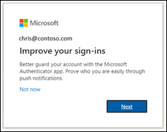 TIP: To move users from telecom-based methods to the Authenticator app, nudge users to set up Microsoft Authenticator.