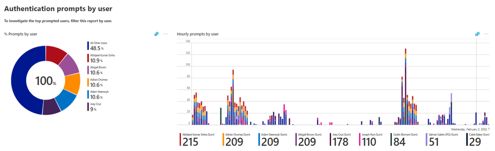 So that’s our overall authentication view and what the authentication experience looks like from a device view. Now let’s take a look at it from a user view in the Authentication Prompts by User data set.