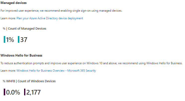 Another way to reduce MFA prompts is to move to a passwordless authentication method at sign-in such as Hello for Business or FIDO2. To validate what authentication methods users have registered in your tenant, you can use the Authentication Methods insights dashboard. If you see things that are not expected, those are good candidates to investigate further.