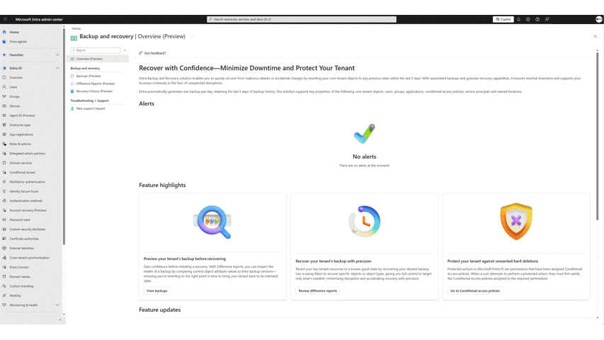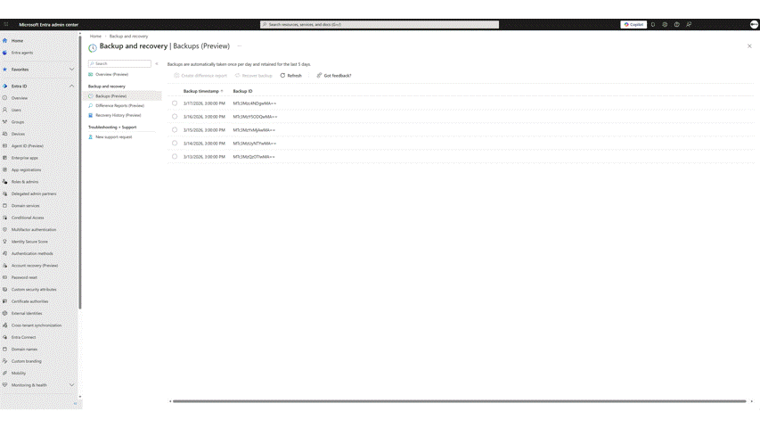 Get started today by navigating to Microsoft Entra Backup and Recovery under the Entra ID blade in the Microsoft Entra admin center.