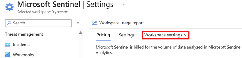 All of these can be found simply by clicking on Settings in the Sentinel menu and then clicking Workspace settings.