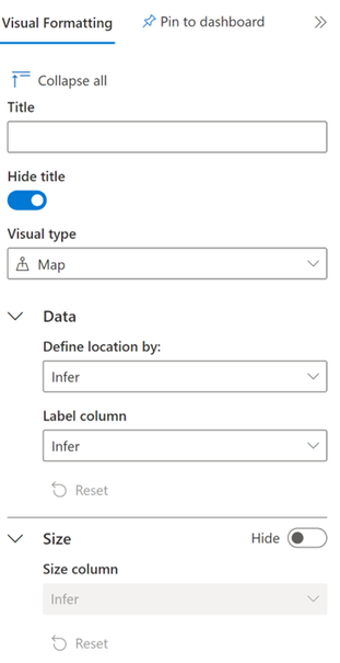 After running the query in the Azure Data Explorer page, a menu will appear to the right of the results. This section will allow you to change settings of the visualization of the query results.