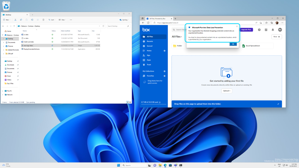 Get started today by turning on endpoint DLP as it is built into Windows 10 and 11 and doesn’t require an on-premises infrastructure or agent. Learn more about endpoint DLP here. You can try Microsoft Purview DLP and other Microsoft Purview solutions directly in the Microsoft Purview compliance portal with a free trial!