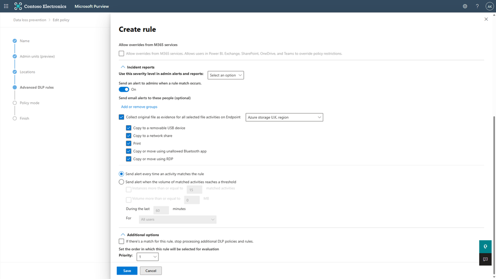 In addition to the matched condition, we are also providing visibility into the document that resulted in the DLP policy match on the Windows endpoint. This level of visibility will enable organizations to better triage false positives and fine tune their DLP policies to reduce noise. Additionally, in situations where the DLP alerts need further investigation, admins will be able to easily investigate the matched content and use it in case escalations. Customers will be able to provide a custom location as part of endpoint DLP settings where the files violating DLP policies will be stored. A link to the file uploaded on the customer-provided location will be made available as a part of the alert metadata at the time of investigation. Follow the steps below to get started: