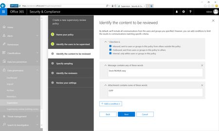 January 29th, 2019 UPDATE: Please see the Use Supervision to monitor email, Microsoft Teams, manage risk, meet regulatory requirement and more article here: https://aka.ms/1.29supervisionupdates