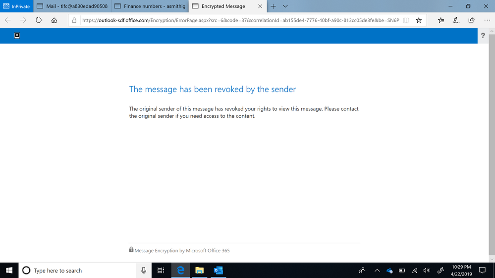 Once the message is revoked, the external recipient no longer access the sensitive email through the Office 365 web portal.