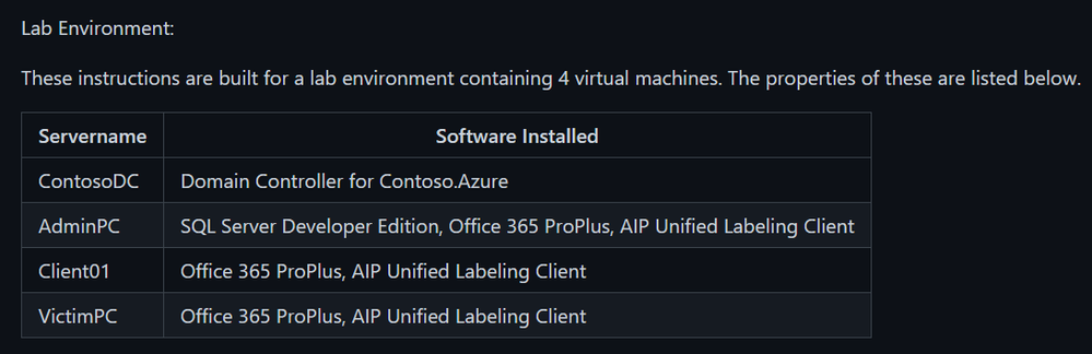 This should contain all of the details you need to be able to create the lab environment in your own test lab, or simply to walk through the scenarios to help understand some of what is possible with Azure Information Protection. Please feel free to provide constructive feedback as we hope to make these better over time.