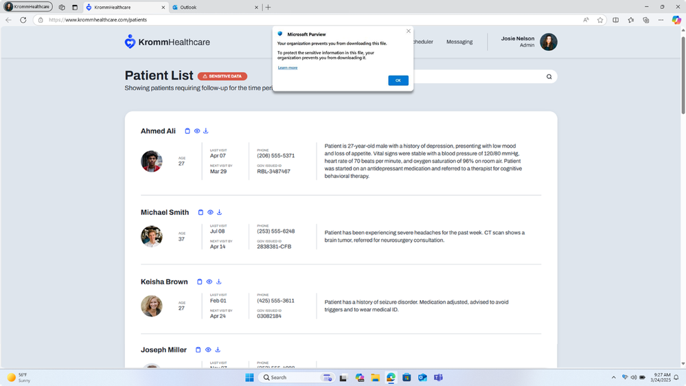 Figure 6: Admins can now enforce data access restrictions in Edge for Business if the user is browsing on a personal or unmanaged computer.As an example, your organization may allow a contractor to use a personal macOS device to access corporate resources. By opening Edge for Business and logging in using their Entra ID account, Purview data security policies can now be applied to that browser session. If the contractor navigates to a managed app such as Workday or a proprietary line of business app, you can apply context-aware data protections such as allowing download of a benefits brochure that does not contain any sensitive information, but preventing download of employee or patient records that contain sensitive data. This context-aware policy helps organizations balance adequate data security controls with end user productivity. To learn more about security capabilities built into Edge for Business, the secure enterprise browser, visit the blog.