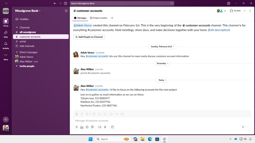 Figure 1: Example of an employee sending sensitive customer account numbers to a 3rd party Slack workspace.If the employee sends sensitive data to that 3rd party Slack channel, such as customer account numbers or contact information, this event will be captured in Purview Data Security Posture Management (DSPM) and Activity Explorer, and the admin can dive deeper into the sensitive data that was exfiltrated & its destination: