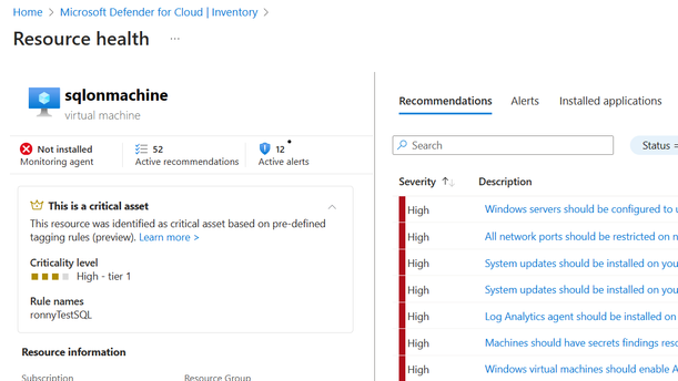 Figure 3: Asset criticality insight in Microsoft Defender for Cloud resource page