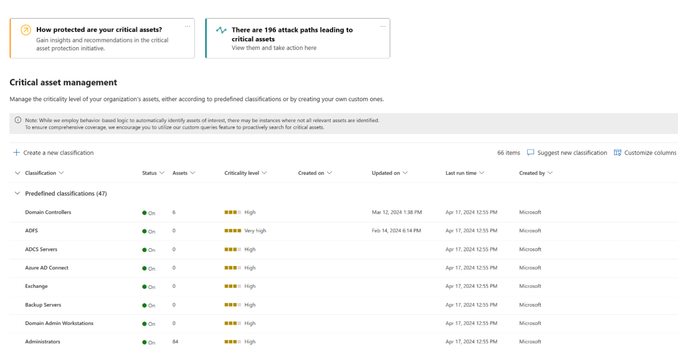 Microsoft Security Exposure Management provides users with everything they need to prioritize their business-critical assets. This includes a comprehensive out-of-the-box library of predefined classifications designed to identify and label your most critical devices, identities, and cloud resources. This includes classification for domain controllers, Azure AD Connect, ADFS servers, Backup servers, security administrators, domain administrators, databases with sensitive data and many more.