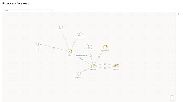 Search for the critical asset "crown" icon in the map: The Microsoft Security Exposure Management attack surface map provides new exploration capabilities and insights into assets’ connections. Critical assets are denoted by the "Crown" icon