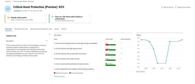 The Critical Asset Protection Initiative is a notable example of integrating asset criticality context. Within Exposure Management, security Initiatives serve as a guiding framework for security teams, encouraging a continuous approach to threat exposure management. Through a dedicated initiative, customers can monitor the current exposure of their critical assets and systematically track their progress in securing these assets. To learn more about initiatives, see Overview of exposure insights and secure score - Microsoft Security Exposure Management | Microsoft Learn