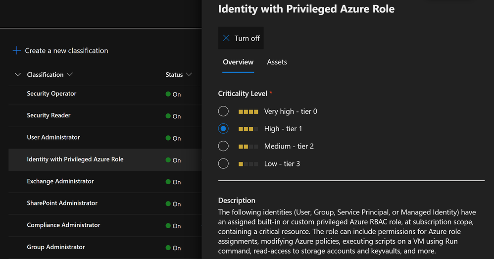Thus, this rule classifies identities which have a privileged action-permission assigned over an Azure subscription scope, in which a critical asset resides, thereby utilizing contextual and differential security measures. This provides the customer with a cutting-edge criticality classification technique for both Azure built-in roles, and custom roles, in which the classification accurately adapts to dynamic changes inside the customer environment, ensuring a more accurate reflection of criticality.