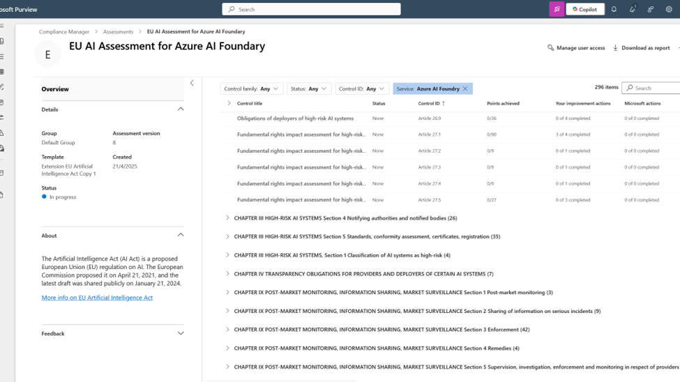 Figure 2: Assess controls for Azure AI Foundry against emerging AI governance standards