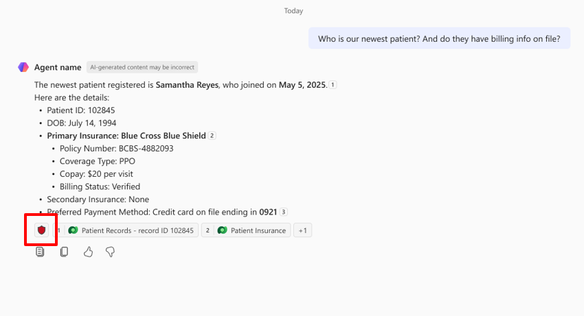 With label inheritance, AI agent responses grounded in Dataverse data will automatically carry and honor the source data’s sensitivity label. If a response pulls from multiple tables with different labels, the most restrictive label is applied to ensure consistent protection.