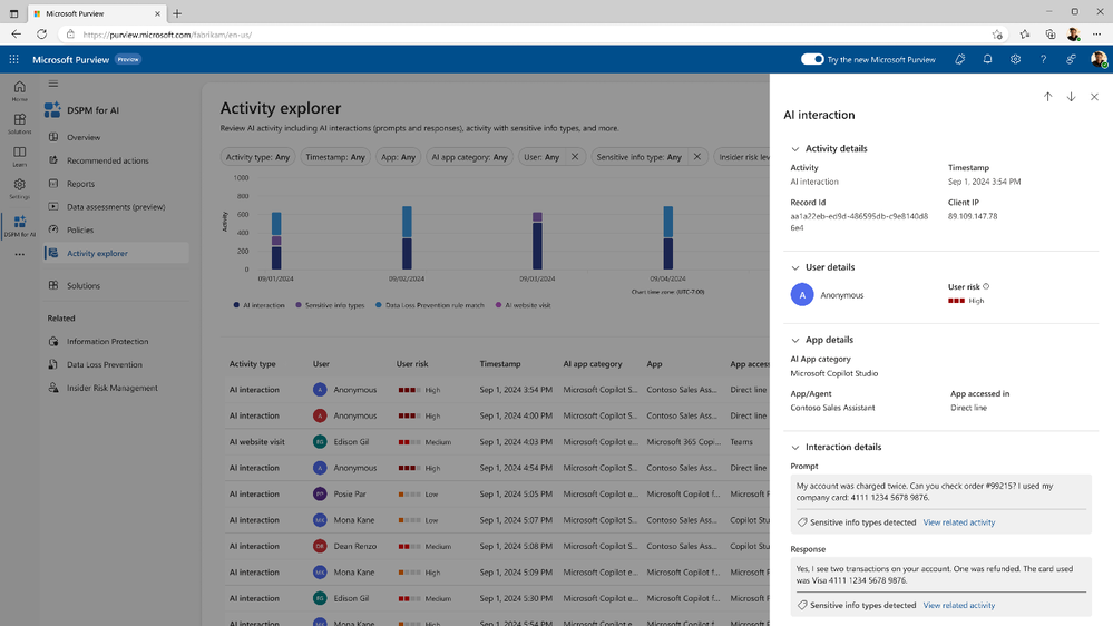 3. Purview DSPM for AI can now provide visibility into unauthenticated interactions with Copilot Studio agents