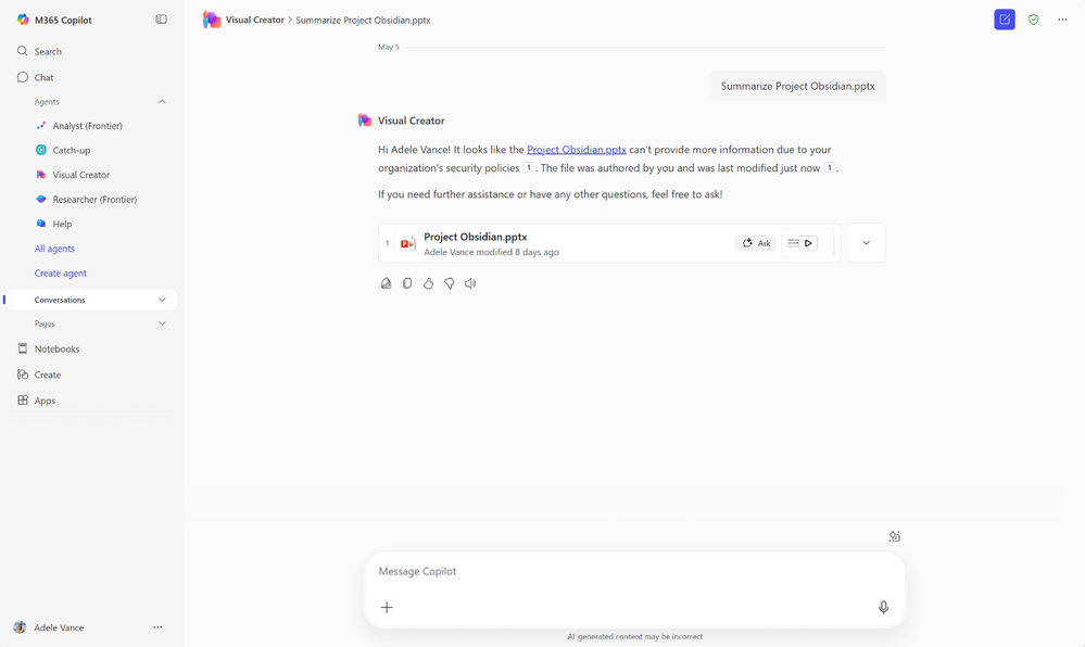 Figure 8: AI-generated responses will inherit and honor the source data’s sensitivity labels