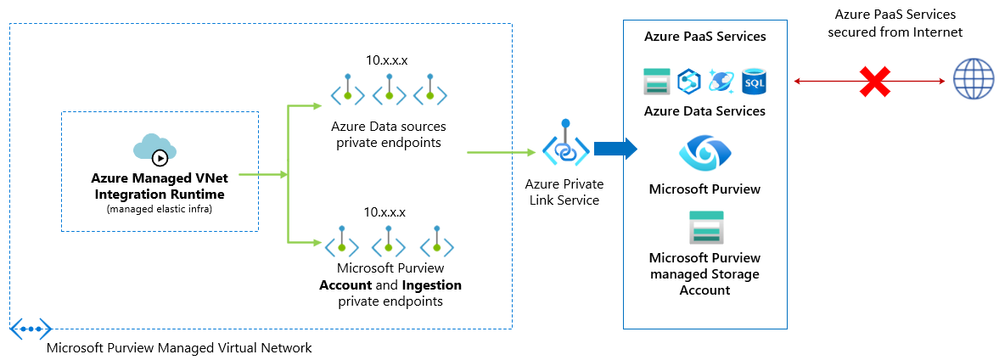 Managed Virtual Network (VNet) in Microsoft Purview enables the scenario when your Microsoft Purview and/or data systems restrict network access, you can run the scan on the Managed VNet Integration Runtime (IR) – a fully managed service by Purview – to securely connect to them via private endpoints.