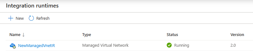 - When you view the integration runtimes, you will see the Managed VNet IR version as 2.0.