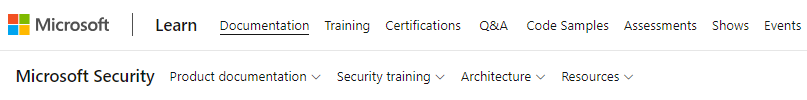 The addition of a secondary menu bar helps learners easily navigate to relevant landing pages both inside and outside of Microsoft Learn, including product-specific content (such as the new training pages for Microsoft Defender, Entra, and Purview), trainings, architecture resources, blogs, videos, events, and more.