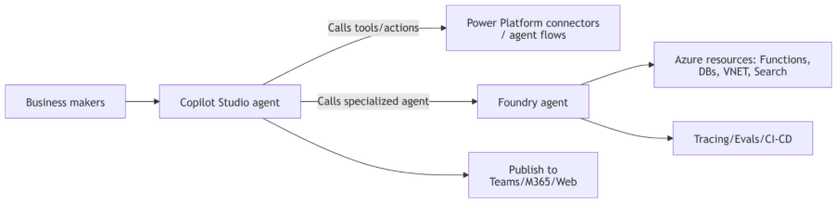 One important insight is that Copilot Studio and Foundry are not mutually exclusive. In fact, Microsoft designed them to be interoperable so that organizations can use both in tandem for different parts of a solution. This is especially relevant for large projects or “fusion teams” that include both low-code creators and pro developers. The pattern many enterprises land on: