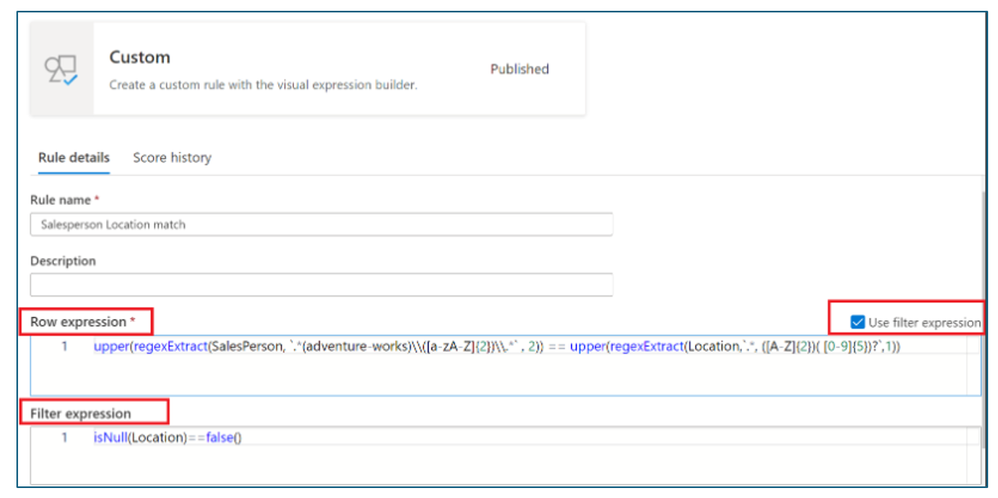 - Ensure that the location of the salesperson is correct. Azure data factory expression language is used to author this rule.
