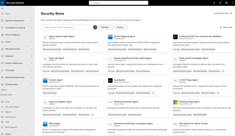 - Embedded where you work: Security Store is now built into Microsoft Defender, featuring SOC-focused agents, and into Microsoft Entra for Verified ID and External ID scenarios like fraud protection. By bringing these capabilities into familiar workflows, organizations can combine Microsoft and partner innovation to strengthen security operations and outcomes.