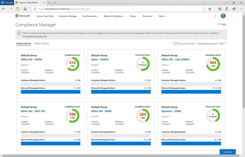 As part of our work on this principle, we are continuing to build and enhance the Assessments available in Compliance Manager to help organizations implement and verify security controls for their Microsoft cloud tenant.