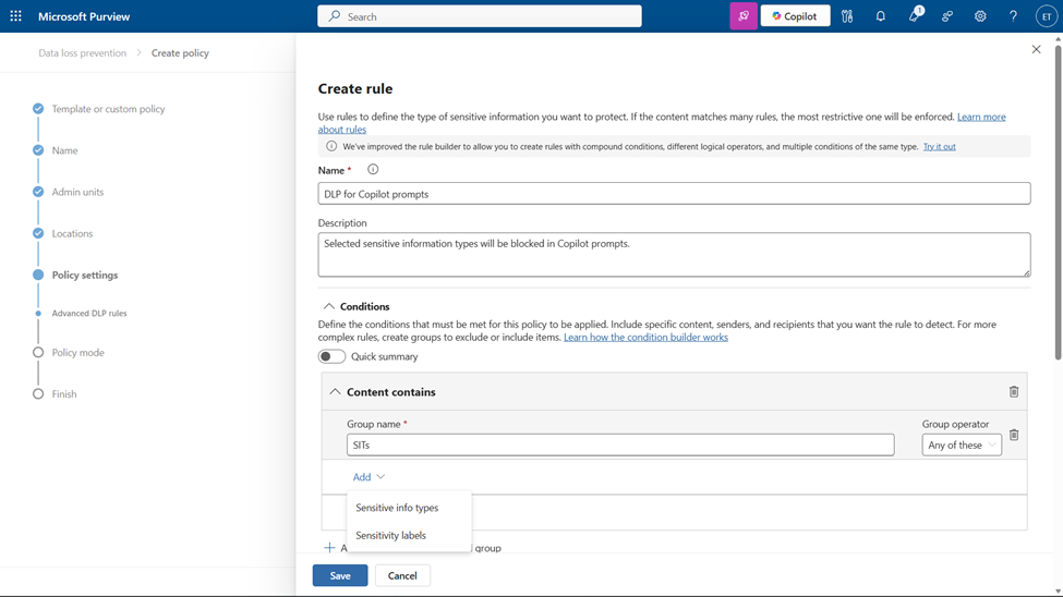 DLP to Safeguard Copilot Prompts with Sensitive Information Types (SITs)