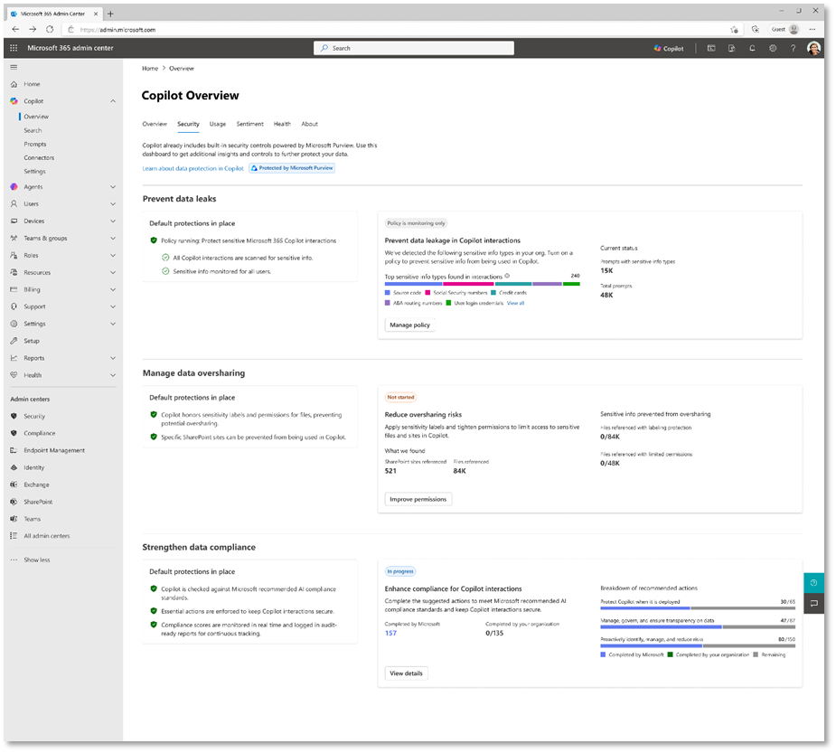 IT and AI admins can enable DLP protection for Copilot prompts directly from the Security section of the Microsoft 365 Admin Center using a simplified setup experience.