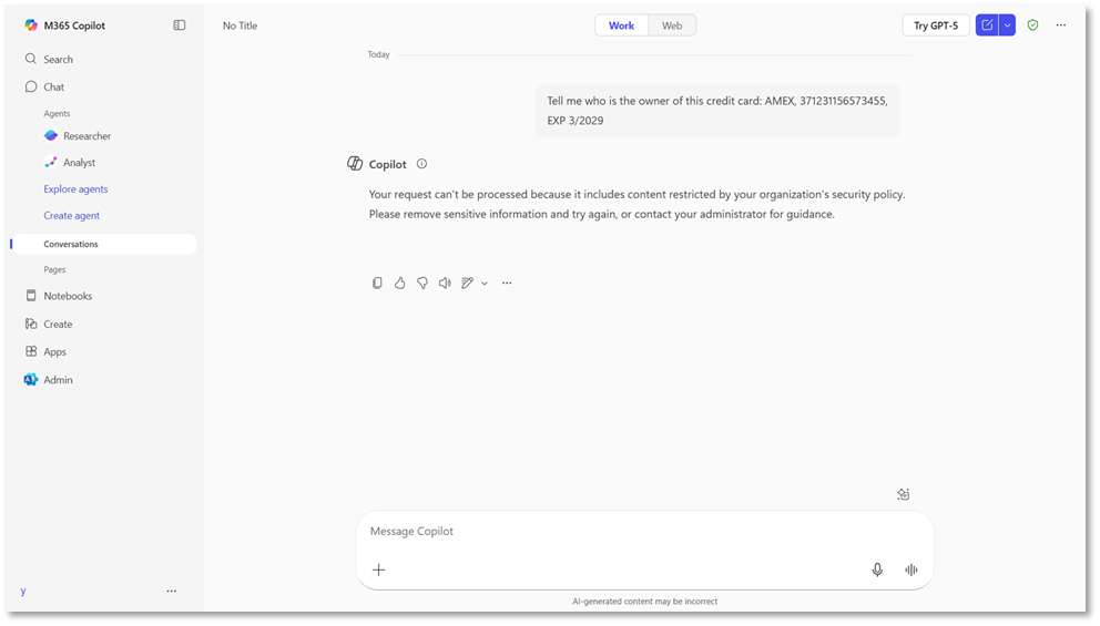 As organizations adopt Copilot, their ways of sharing, creating, and interacting with data expand. With just a prompt, users can have Copilot summarize documents, analyze spreadsheets, or help brainstorm presentations. However, it raises an important question: what if the prompt includes sensitive information, like project code names, financial account numbers, health records, or other sensitive data?