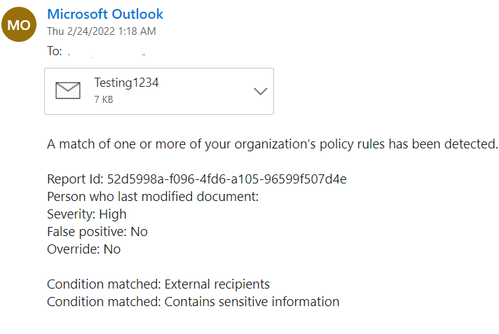 Predicate ExContentContainsSensitiveInformationPredicate evaluation resulted in a match with Confidential properties.