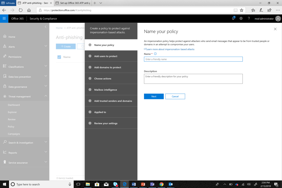 Anti-Impersonation Enhancements in Office 365 Advanced Threat Protection