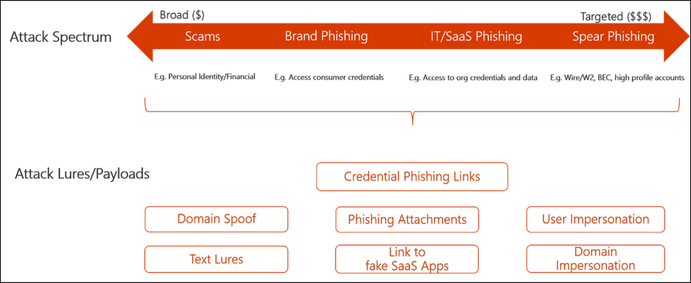 Figure 2. Spectrum of Phishing Campaign types and Potential Phish Lures