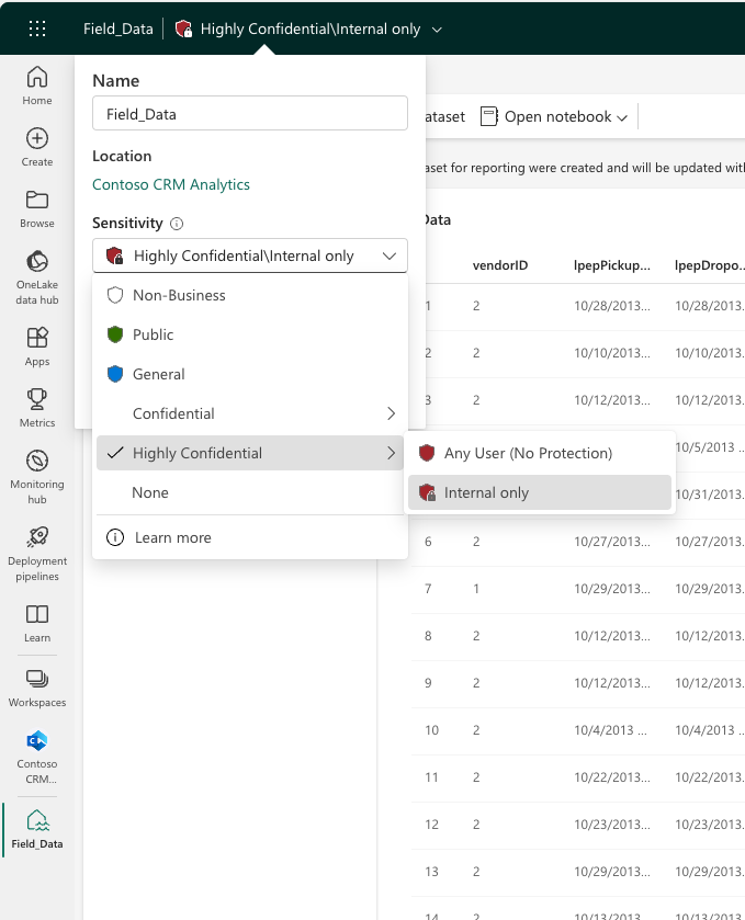Figure 2: Using Information Protection sensitivity labels in Fabric.