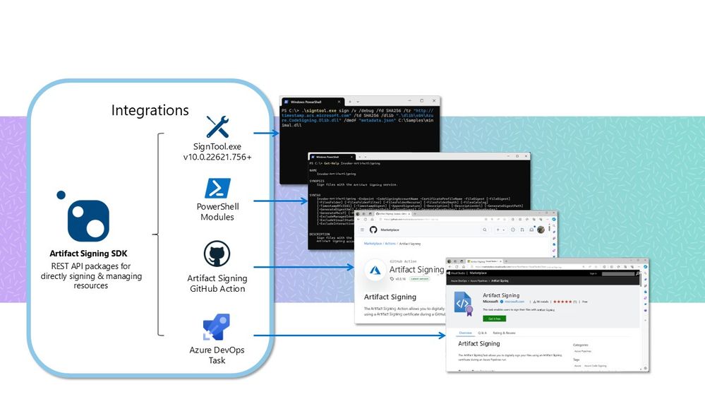 • PowerShell & SDK: For advanced automation or custom scenarios, Artifact Signing supports PowerShell modules and an SDK. These tools allow you to script signing operations, bulk-sign files, or integrate signing into specialized build systems.