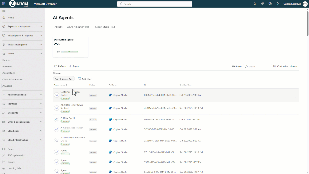 At Ignite 2025, Microsoft Defender is announcing the preview of unified posture management and threat protection for AI agents.