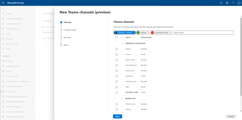 We recognize that identifying and collecting Teams private and shared channel content can be a significant challenge for eDiscovery users due to the diverse locations where channel content is stored, across Exchange, OneDrive for Business, and SharePoint Online.