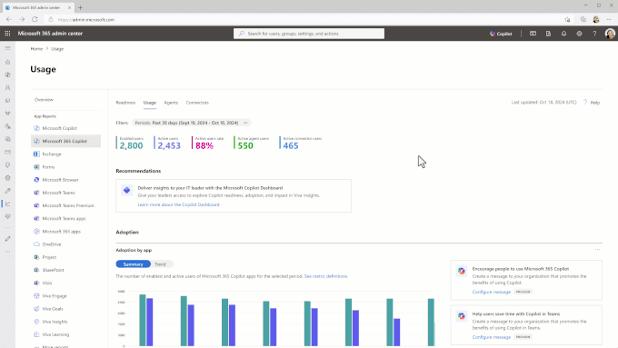 In the coming weeks we will introduce active user metrics of agents, showing totals, summaries, and trend views in the Microsoft 365 Admin Center. You’ll be able to view agent details such as App ID, Name, Publisher, Active users, and the Last activity date. With these new user metrics, admins can now track agents end to end from deployment to usage in admin center. Agents add new skills to Copilot and configuring new connectors expands the pre-indexed knowledge available to Copilot. The initial release of this update will be limited to usage of agents built by your organization via Copilot Studio (including agent builder) and Teams Toolkit. In the coming months we will enable information on the usage of agents built by Microsoft and Microsoft Partners, as well as usage of connectors.