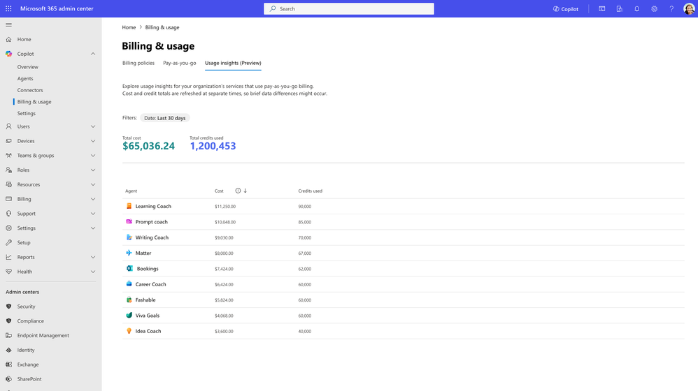 We’re also introducing agent usage insights under Billing & usage in the Microsoft 365 admin center. Now, AI admins have real-time, granular visibility into consumption and spending for Copilot pay-as-you-go services at the billing policy level. Admins can monitor usage, set budget limits, receive usage threshold alerts, and allocate costs accurately, ensuring resources are used efficiently and budgets are managed proactively Public Preview started in October 2025 with a planned GA rollout in December 2025.