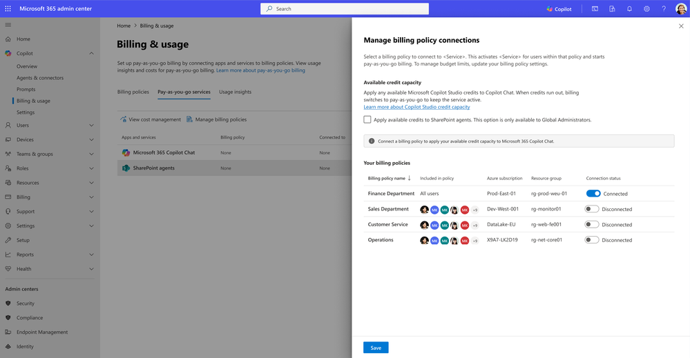 We’re adding several new controls to support and manage billing associated with agent usage. New Agent Billing Policies allow admins to assign agents to specific billing policies, improving cost tracking and financial transparency. Usage and Cost Insights for pay-as-you-go (PAYG) provide detailed analytics for PAYG services, supporting budgeting and resource allocation decisions. And with prepaid Copilot credit capacity now integrated into billing policies in the Microsoft 365 admin center, organizations can apply prepaid capacity to agents, helping control usage costs. Public Preview started in October 2025 with a planned GA rollout in December 2025.