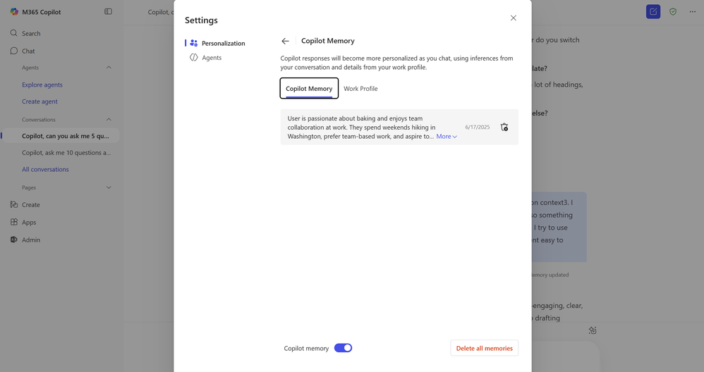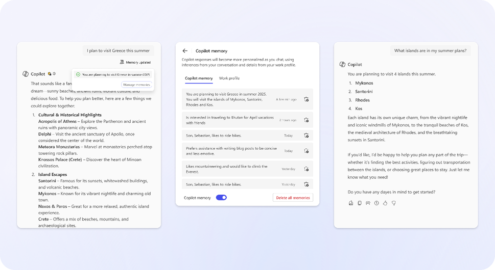With memory, Copilot becomes more than just a helpful assistant—it becomes your assistant. It reduces repetitive input, speeds up task completion, and tailors its responses to your unique needs.