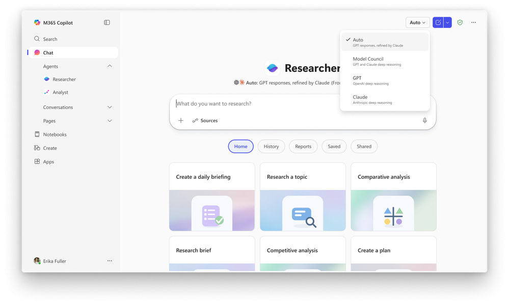 Today, Researcher—Microsoft 365 Copilot's deep research agent for work—takes a significant step forward. Designed to tackle complex research in the flow of work, Researcher now goes further with two new multi-model capabilities that raise the bar for accuracy, depth, and confidence: Critique and Council.
