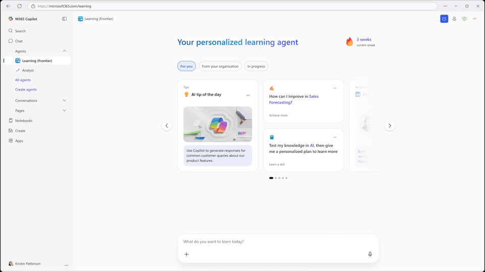 The Learning agent is available now for customers with a Microsoft 365 Copilot license as part of the Frontier program.