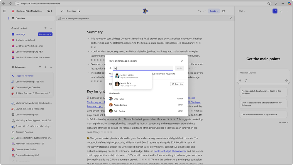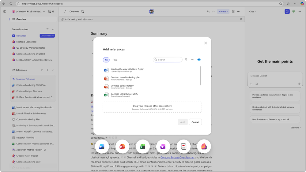 Curating references helps Copilot provide reliable responses grounded in Notebook context, minimizing the chance of hallucinations. When the work is done, the Notebook captures not just the result, but also the context and insights, making it easy to revisit, share, or build on in the future.
