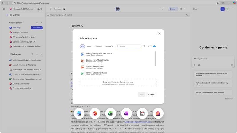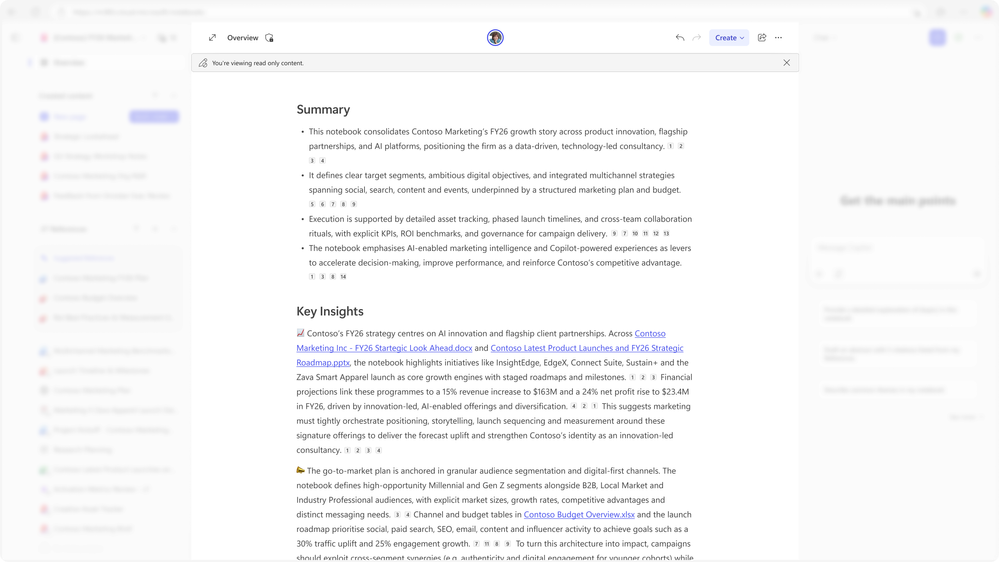 Curating references helps Copilot provide reliable responses grounded in Notebook context, minimizing the chance of hallucinations. When the work is done, the Notebook captures not just the result, but also the context and insights, making it easy to revisit, share, or build on in the future.