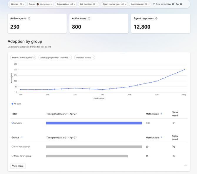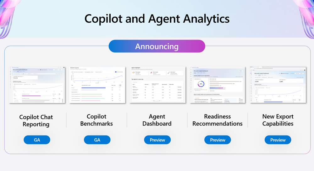 Copilot and Agent Analytics delivers unified, powerful platforms for organizations to accelerate their AI transformation. With the latest releases, leaders and analysts can now track adoption, compare performance, and create custom reports with ease.