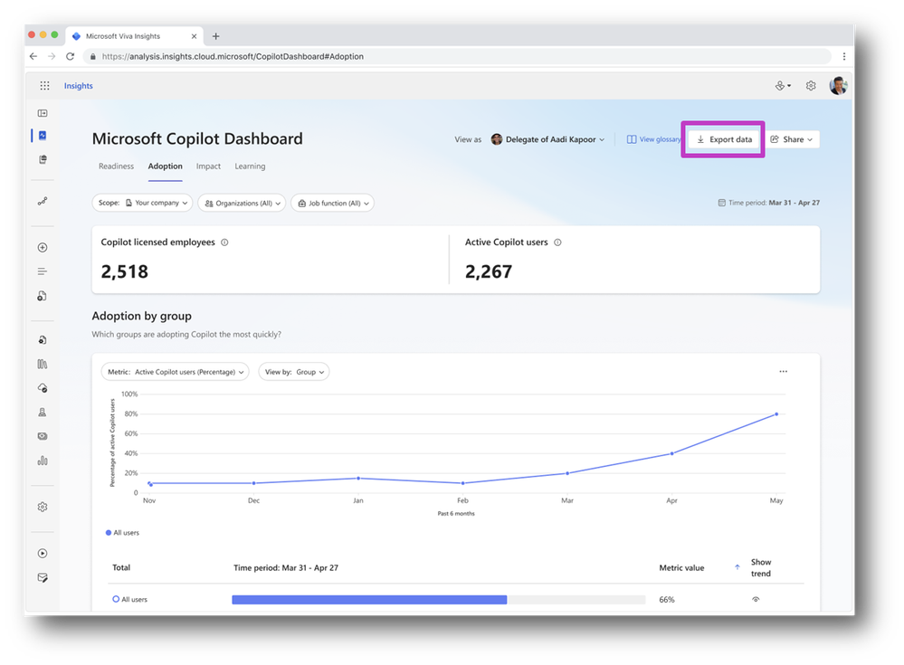 - Export Functionality: Download Copilot Dashboard data as a CSV file for custom reporting and deeper analysis.